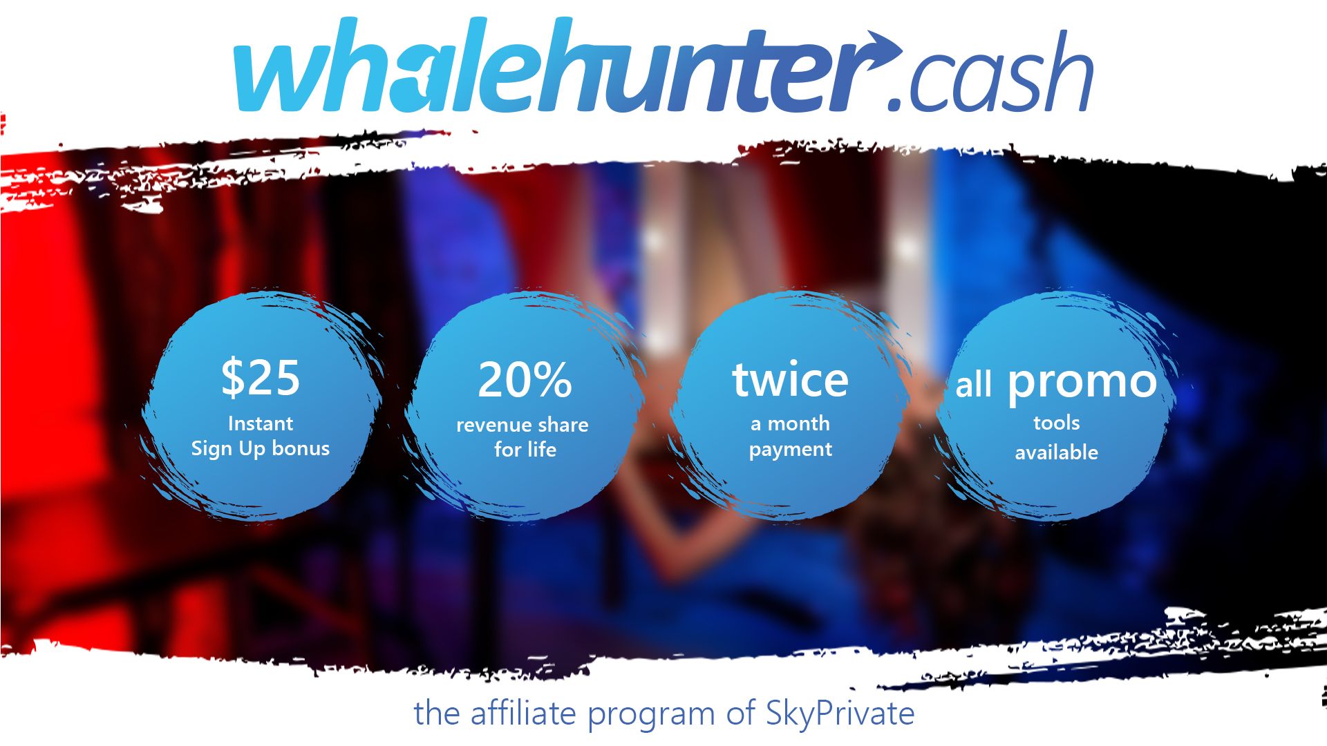 9. I'm sure many of you have already earned money by promoting live cams sites, but even more certain are that you haven't yet heard of the newest model of live cams, specifically live cams on Skype. Yes, you read that right, Skyprivate is the largest premium website that gives members the opportunity to get in touch with live models directly on Skype. If you want to start making money with us then I invite you to join Whalehunter.cash affiliate program and get an instant signup bonus of $25. My name is Magnus and i`m the Affiliate Manager from Whalehunter.cash - Skyprivate.com`s affiliate program. We are a premium service that offer LIVE cam shows on Skype, using the pay-per-minute technology developed by us. We are offering a 20% revenue share for life for every dollar spent(calls, tips, model`s store) by members you bring on Skyprivate.com. We also have one of the highest paying webmaster referral offer in the market, where we give you 10% revshare from the earnings of the affiliates that you are referring to our program. Register now and get an instant signup bonus of $25!