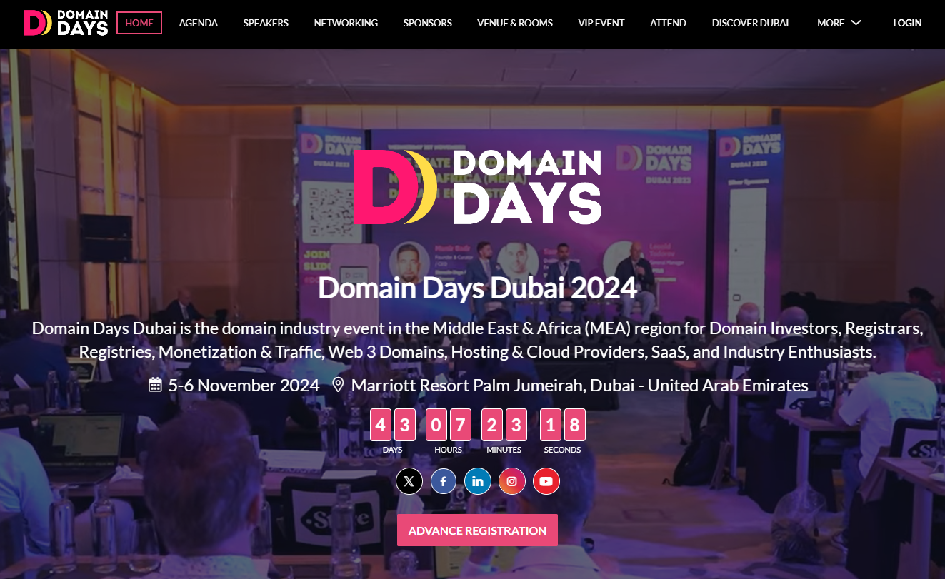 7. Domain Days Dubai is the domain industry event in the Middle East and Africa (MEA) region for Domain Investors, Registrars, Registries, Monetization and traffic, Web 3 Domains, Hosting and Cloud Providers, SaaS, and Industry Enthusiasts. Check the Domain Days review we did. About Domain Days Dubai Domain Days is a business event in the MEA region (Middle East & Africa) featuring rich and actionable insights into the world of digital assets, featuring Domain Investors, Registrars, Registries, Monetization & Parking Providers, Traffic Sources, Web3 & ALT Root) domains, Web Hosting Providers, Cloud Providers, and Industry Enthusiasts. The two-day event brings together experts worldwide to discuss the latest industry trends and gain insights into the MEA region. Moreover, this year, we are hosting the region's first domain name/digital asset auction at the event! Why Attend Domain Days Dubai? The conference covers various topics, including domain name registration and management, auctions, investing, parking, and monetization strategies. The conference focuses on the industry's newest topics, mainly the rise of Web3 domains, which are gaining traction worldwide and shaping the future of the Internet. Finally, the event focuses on the importance of the MEA region as a new hub for domains and hosting companies. It's all about networking! The conference provides ample opportunities for networking and collaboration. Attendees can meet and connect with professionals from different industry sectors, exchange ideas, and forge new partnerships. Who Attends Domain Days Dubai? Domain Registrars Domain Registries Investors & Monetization Policy, Trademarks & IP Domain Brokers Regulatory Bodies Web 3 Domains Hosting, Cloud & SaaS Tickets Stay updated: Website: https://www.domaindays.com/ X: https://x.com/domain_days Facebook: https://www.facebook.com/domaindays Linkedin: https://www.linkedin.com/company/domaindays/ Instagram: https://www.instagram.com/domaindays Youtube: https://www.youtube.com/@DomainDays
