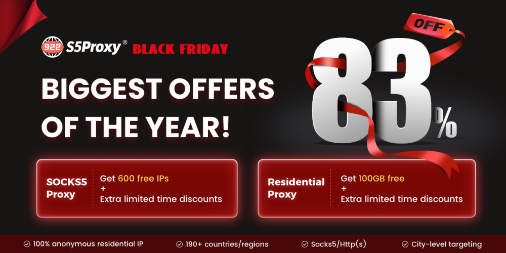 Looking for fast, reliable, and affordable residential proxies? Look no further! 922S5Proxy offers: ✅ 200M+ Residential IPs across 190+ countries ✅ ISP-level targeting for precise geolocation ✅ Static & Dynamic Proxies for all your needs ✅ 24/7 support & no charge for invalid IPs 🔥🔥Special Offer: Get 600 FREE IPs +10% off extra discount + Price reduction during Black Friday! 🎉 Newly launched super discount package 700GB, only $0.77/GB!! Perfect for data scraping, ad verification, social media management, and more! 🛠️ 👉 Grab the limited time discount ✉️Contact us - [email protected]