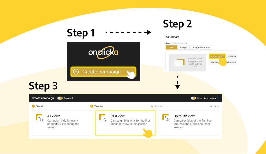 [Update] First-View/Click Popunder Targeting now in Self-Serve🔥 Small update, but one many have been waiting for. Now you can manage First-View/Click Popunder Targeting directly in self-serve. Before, you had to go through your manager every time. Now it’s enough to request activation once — and the feature will stay in your dashboard permanently. 😎Why it’s popular among advertisers: - Catch attention from the first visit — showing the popunder on the very first impression often delivers higher CTR and engagement. - Flexible testing — choose 1st view, up to 5th, or even set your own custom range to compare performance. - Smarter optimization — quickly see what timing brings conversions and cut the spend on what doesn’t work. If you want to try this feature, just ask your manager to enable it and you’re good to go. 🔥 Unlock Feature in Self-Serve🔥
