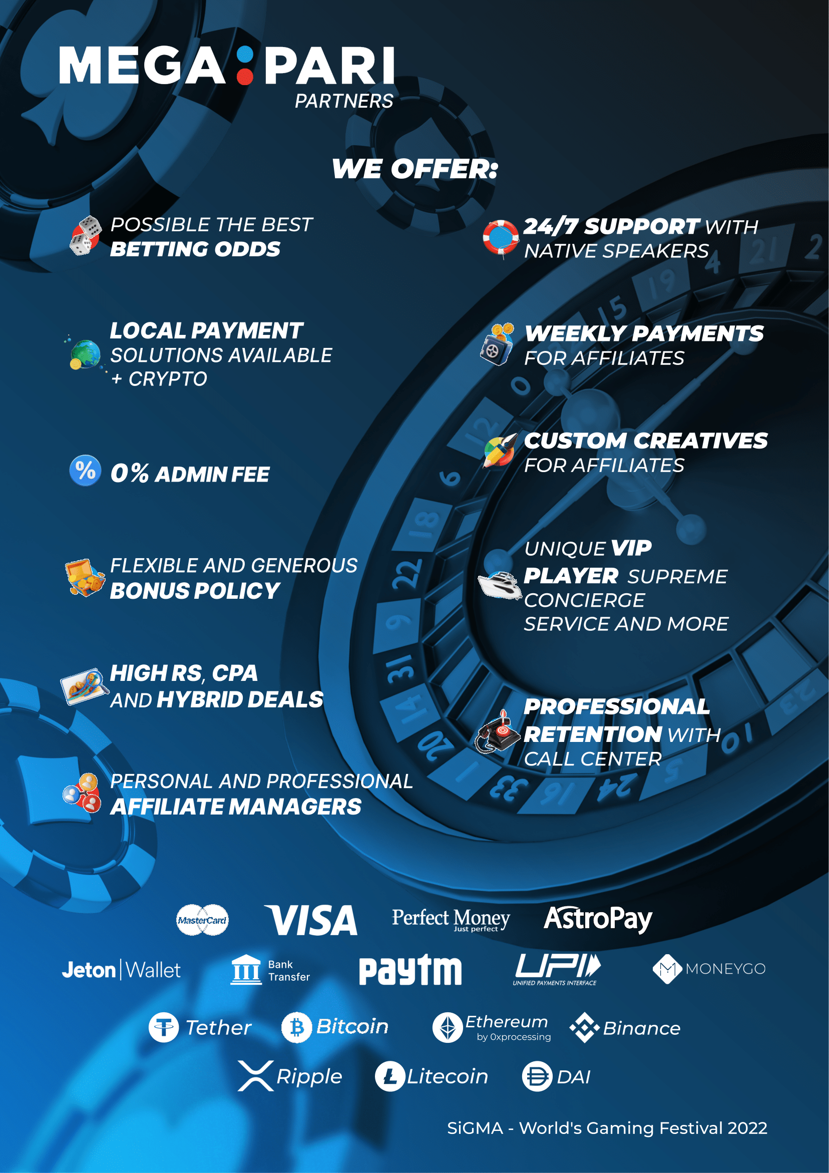 Join MegaPari.com, your premier destination for exhilarating sports betting and online casino action! 🎰💰 Enroll in our Affiliate Program designed for casino and betting-related websites. Elevate your earnings and provide your users with an unparalleled gaming experience. 💪🚀
