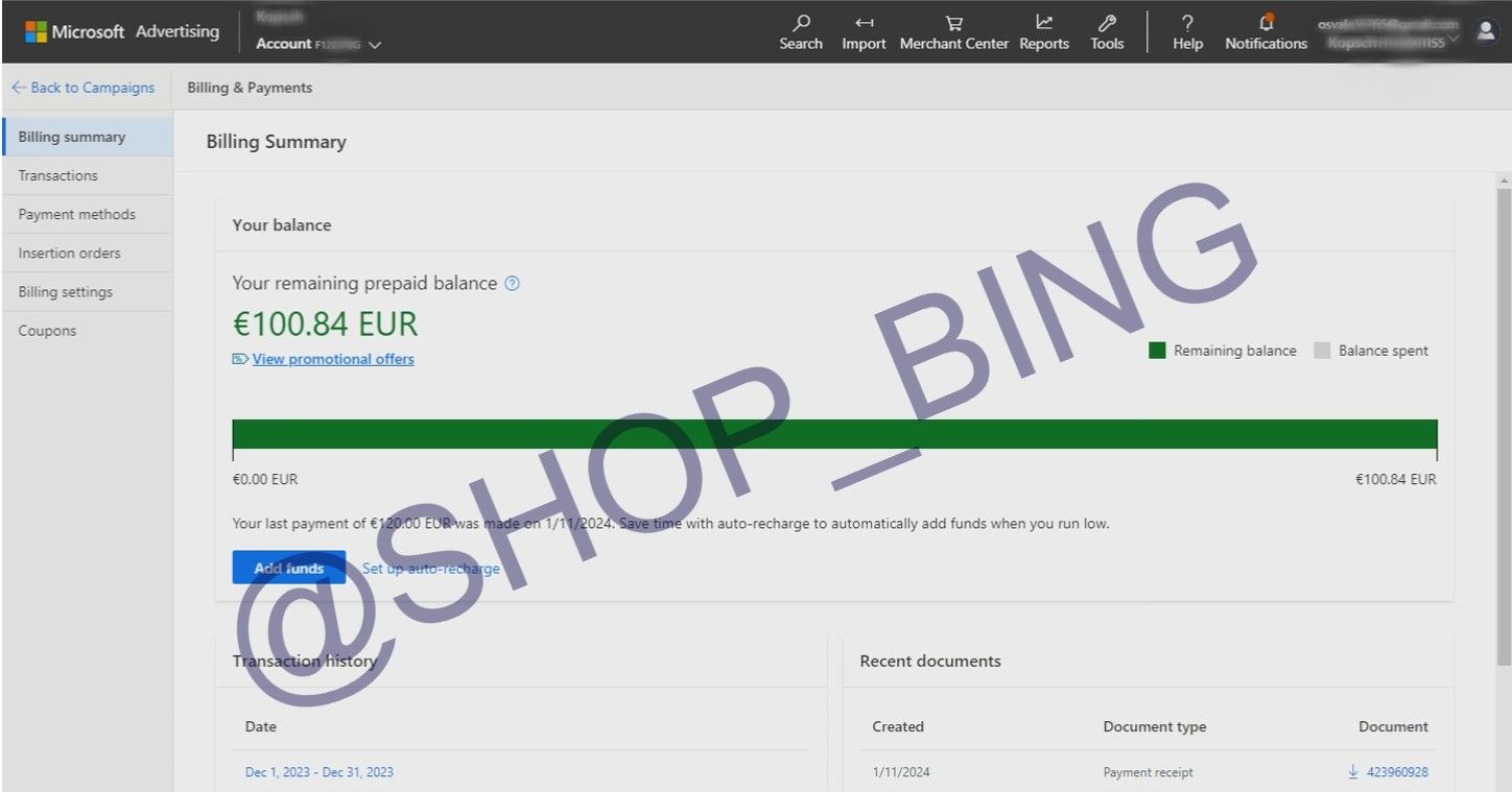 โ Selling BING ADS accounts with balance โญโญโญโญโญ
