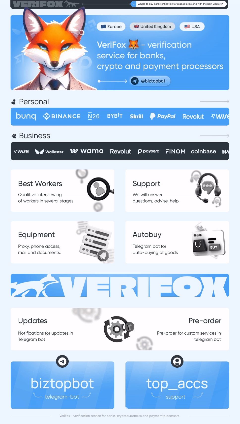 3s.money,4coins,4x4,ABN-AMRO Iban NL,acornaccount.com,Acorns.,Adsterra,Advcash,Advcash (volet),Advcash Business,Air Bank Iban CZ,AirBnB,Airbnb,Aircash,Airtm,Airwallex,airwallex,Airwallex Business,airwallex.com,Akt,Albert,Algosone,Alior Bank. Ing Bank Iban Pl Es Nl,Alipay,Allian Credit Union,Ally,Altpay,Amazone,American Express,Amex,Anchor,Anna,Anna Business,Anna business,Anycoin,Anycoindirect,Arongroups,Ascendex,Aspiration,Astropay,astropay,astropay + bet365. LLoyds,Astroproxy,Atmen,Austria bank,Austria Bawag,Aximetria,Azylos,Babb,Background Report,Bank Logs Ebook,Bank of America,Bank of America business,Bank One,Bank Statement,Bankaustria,Bankera,bankera Soldo business,Bankomo,Banks (eu/uk),Banxe,Barclays,Barclays Highstreet,Barter,Baybit,BBVA,Bbva,bbva,Beenverified,Belo.app,Betfair,Biabuy,Bibox,Bilderlings,Binance,Binance.us,Bingx,Biststamp,Bit2me,Bitcastle,Bitfinex,Bitflex,Bitflyer,Bitget,Bitinvestor,Bitladon,Bitmake,Bitmart,Bitmex,Bitnovo,Bitpanda,Bitpapa,Bitpay,Bitrefill,Bitrue,Bitrue.com,Bitsa,bitsa. joompay. ibandirect,Bitsacard,Bitsafe,Bitsafe iban Nl,Bitscard,Bitskins,Bitso,Bitstack,Bitstamp,Bittrex,Bitvavo,bitvavo,Bitxbit,Bitzlato,Bkex,blackcatcard,Blackcatcard,Blackcatcard Business,Blackwell,Blockbee,blockchain,Blockchain,Blockchain Gold,Blockfi,Blocktrade,Bluebird,Bluevine,Bmo Business,Bmoharris,Bmoharris business,bmoharris.com,BneXt,Bnkpro,Bofa Business Llc,Brighty,Bringx.com,Btcbit,Btcc,Btcdirect,Btcex,Btse,Builderlings,Bunq,bunq,Bunq Iban DE Nl FR IE,Business Banks (eu/uk),Bybit,Bynex,C24 IBAN DE,Capital One,Capitalist,Card,cardonemoney.com,Cards.excelon,Cash App,Cash app,Cashapp,cashplus. juni. ofx. spendesk. xe.com,Celseus,Celsius,Cex,Cex io,Cex.io,Changelly,Chase,Chase business,Chicksgold,Chime,Citadele iban LV,Citi,Citizens,Citizens Bank,Clubswan,Coinbase,Coinchange,Coincola,Coincorner,Coinex,Coinfalcon,Coinfinity,Coingate,Coinhouse,Coininn,Coinlist,Coinmama,Coinme,Coinmerce,Coinmetro,Coinone,coinpayments,Coinpayments,Coinsbit,Coinspot,Coinw,Coinzilla,coinzoom,Coinzoom,Commerzbank IBAN DE,Conotoxia,Cosmopayment,Counting Up Business,CountingUp,Countingup,Credit Report,Crypterium,Crypto,Crypto Com,Crypto.com,Cryptopay,cryptopay,Cryptovoucher,Crédit Agricole Poland PL,Currency Com,Currencyfair,Current,Currenxie Business,Curve,Dave,Deepcoin,deribit,Deribit,Deutsche Bank Pl. ******,Dharma,Dipocket,DiPocket Iban PL,Discover,Dl Check,Dmarket,Doordash,Dora,Drivers License,Dscb,dtscb,Ducascopy,Dukas,Dukascopy,Dzing,Ecopayz,Egera,Eglobex,eGlobex Fr,elastum,Eldorado.gg,Eldorado.io,Embily,Emerald24,Epn,Epn.net,Etoro,Evo Banco,Excelon,Excelonmoney,ExcelonMoney,exmo,Exmo,Facebook,Fansly,Fanvue,Fasterpay,Fibitpro,Fidelity,Fillit,Fillit.eu,Fin,fin.do,Finandy,Finci,Finom Business,Flykk,Found,Freelancer,Frost,Frost Bank,frost UK,Ftx,Fullz,Future,GA2 seller,Gamdom,Garantex,Garts.exchange,Gate,Gate.io,Gekkard,Gemini,gemini,Genome,genome,Geonode,Globex,Globexfrance,Gmail,Gmx,Go2bank,GoCardlesss,Godaddy,Google,Google Voice,Goonus,Gosolo,gosolo.net,grey,Grey,Grey Bank,Grover,Guardarian,Helcim,Hetzner,hi,Hitbtc,Hotmail,HSBC,Htx,Huntington,Huobi,huobi,HVB bank,HypoVereinsbank Iban DE,Ibandirect,Ibanico,ibanico Iban FR,Ibinex,Icard,Imagenpay,Imagin,Imagine,Incharge-card,Indacoin,Instagram,Intelius,Investvoyager,Invoice,Iproyal,Ironfx,Itez,Jeton,Joompay,Juni,Juni Business,juni.co,Kauri,Kikoff,Knaken,Knaken.eu,Koinal,Koinbx,Kora Money,Kraken,kraken,Kriptomat,Kroo,kucoin,Kucoin,Kuna,Kvitum,L.cash,Lama,Latoken,Lava,Lbank,Lili,Lili business,Linkedin,Liquid,Litebit,litebit,Lloyds Highstreet,Localbitcoins,Luno,Lydia,Lykke,M&t,M.ibank,Mail.com,Makara,Marcus Bank,Marsproxies,MeestPay,Mercari,Mercurio,Mercury,Mercury.io,Mercuryo,Merrill Edge,Metalpay,Mettle,Mexc,Mexc.com,Mifinity,Millenium Bank PL,Mistertango Business,Mode,Monese,Money,Moneybase,moneybase,Moneycorp,Moneygram,MoneyJar,Moneyjar,Moneylion,Monolith,Monzo,Monzo + Card,Moonpay,Mtpelerin,Muchbetter,Multiple Vccs Solutions,My pocket,My.worldstream,Mybambu,Mycoinfy,Mycoinify,Myfin,MyMonty,mypcs,Mystake,Mytu. Paxum,n26,N26,Naga Pay,naga pay,Nagamarkets,Nagapay,Nash,Natwest,NatWest,Natwest Business,Natwest Highstreet,Navy,Navy Federal,Nearpay,Nebeus,Neocrypto,neteller,Neteller,Netspend,newton.con canada,Nexo,nexo,Noones,Northcrypto,Novo,Nuri,Obiex.finance,Offerup,OFX,Okcoin,okeo.com,Okex,Okx,olky pro,olkypay.com,Omgfin,Omniwire,One Finance,Onlyfans,Onlyfans + Skrill,OnlyOneCard fr iban,Openbank ES,Outlier,Outlook,Ozan Plus Plan,P100,P100.io,P2pb2b,Paribas PL,Passport,Paxful,Paxfum,Paxum,Pay Pal,Pay Send,Pay.naga,Payactiv,Paybis,Paydo,Payeer,payeer. epaycore,Payfura,payfura,Paymiq,Paymium,Payneer,Payoneer,PAYONEER,Payoneer Business,******,****** Business,****** Logs Guide,******l,Paysafecard,Paysend,Paysend Business,paysera,Paysera,Payset Business,Paytend,paytend,Peakwallet,Pecao Iban Pl,Penfed,Penta,perfect money,Perfect Money,Perfectmoney,persona,Pexpay,Peysera,Phemex,Phyre,Phyre app,Piastrix,Pko PL,Plastrix,Plutus,Pnc,Pockit,Podecard,Poloniex,Porte,Post,Privateproxy,profee. paybis. Bilderlings,Protonmail,Proxyrack,Pst,Pyypl,Qonto,Qonto Business,Qonto Business Es,Qonto Business Fr,Qonto Freelance De,Qonto. YieldApp,Quantfury,Quickbooks,Quppy,Rabobank nl,Rabobank NL,Rainfaisen Iban CZ,****,****.network,rbs.co.uk,Ready List:,reap.global,Rebell pay,Redotpay,Refund Ebook,Refunding Ebook,Regions,Relai,Relayfi,Remitly,revolut,Revolut,Revolut Business,revolut business + merchant,Revolut UK,Rewire,Riamoneytransfer,Ripple,Robinhood,RobinHood (US) +vcc,S1lkpay,Sabadell,Sable,Salie Mae,Santander,Santander ES,Santander Highstreet,Saurus,saurus,Scans,Scarlet,Schwab,Selfie,Send App,Shopify,Simpleswap,Simplex,Simplex iban LT,Skrill,Smallworld,Smarty Pig,Soax,Sogexia Lu iban,Sokin,sokin,Sparkasse,Sparkasse AT,Spectrocoin,Spendl,Spruce,Square,Squareup,Ssn Check,Stake,Starling,Step,Streamatemodels,Stripe,Stripe + Icard Bussines,Stripe + Wise,Stripe Business,Suits Me,SuitsMe,Suitsme,Sumsub,Sumup,Sumup Business,Suvi,swapin,Swapin,Swaps.app,Swipe.io,Swissborg,Switche