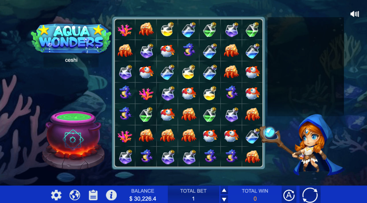 Aqua Wonders is a 7x7 underwater-themed slot, where the Sea Witch enchants with her spells, unlocking significant bonus and reward players with huge multipliers!