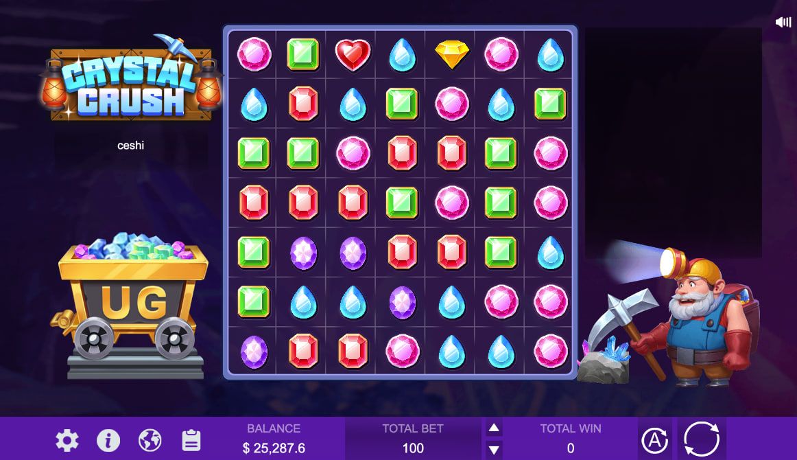 Crystal Crush is a 7x7 gemstone mining-themed slot, filled with wealth, luxury and secrets, the player’s mission is to discover the hidden treasure of the underground mine.