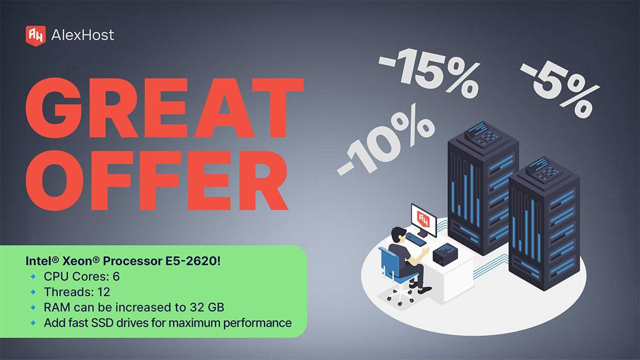 Looking for a reliable server for your projects? Check out the tariff plan with Intel® Xeon® Processor 2690v3! (https://bill.alexhost.com/?cmd=module&module=111&cid=1187)