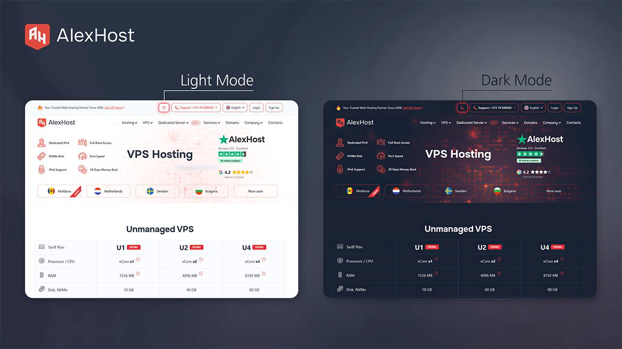 🖥 An attentive user will probably notice that along with the AlexHost (https://alexhost.com/vps/) team implementing a new VPS page design, a dark theme was also created! 🌑