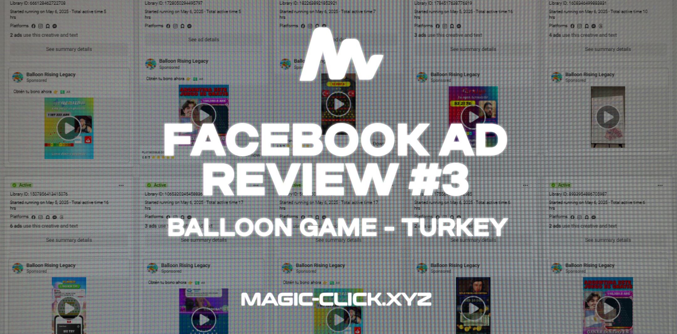 We're continuing our ad review series. In the last post (https://t.me/magicclickteam/357), we broke down a Bonanza offer running in Argentina. This time, we found an interesting creative promoting the Balloon game in Turkey🇹🇷