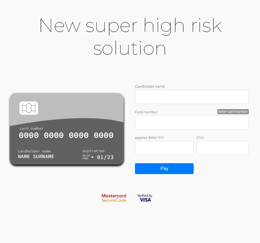 Acquiring. A classic bank payment form with a 3DS code. VISA, MC, Union Pay, WeChat, Alipay, etc.