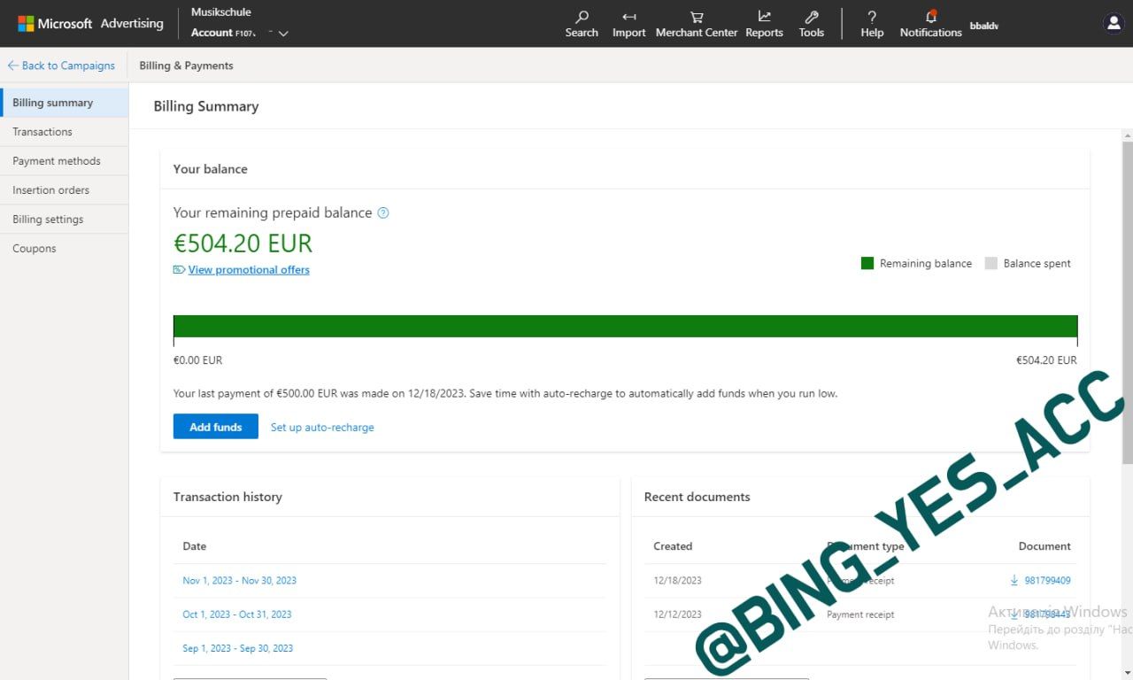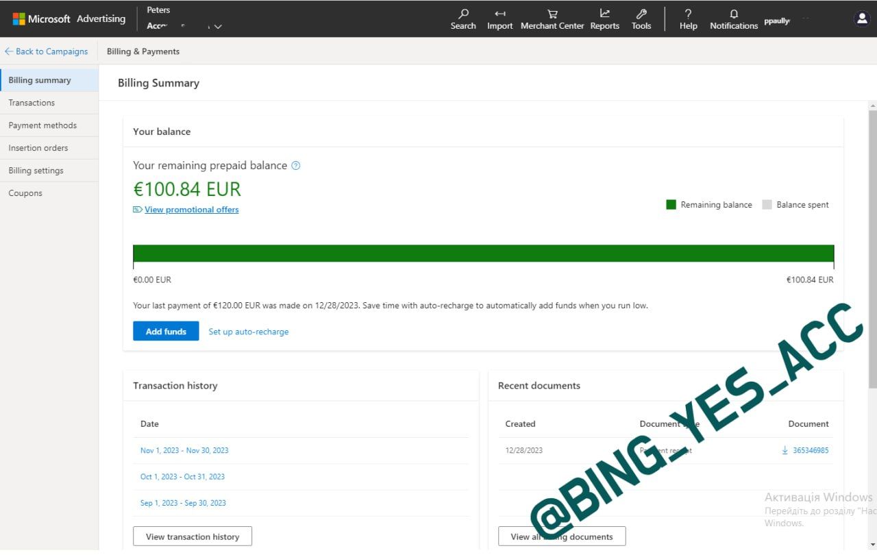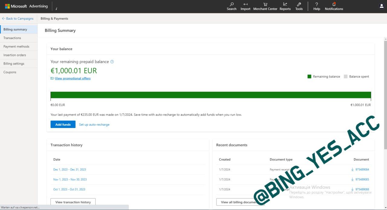 ✔️ Selling BING ADS accounts